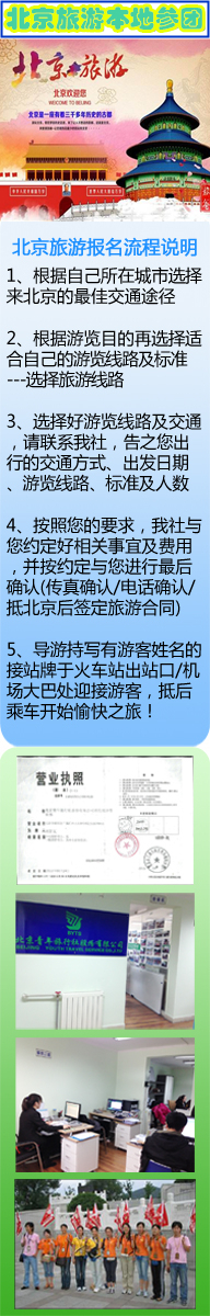 【皇家童行(相親相愛親子結(jié)伴游)】北京5日游(臻選北京優(yōu)質(zhì)資源,奇趣世界,教樂相融) 統(tǒng)一零售價(jià): ??發(fā)團(tuán)日期:天天發(fā)團(tuán),6月23日起天天發(fā)團(tuán),7月1-10日上調(diào)200元/人,... 團(tuán)期:星期一,星期二,星期三,星期四,星期五,星期六,星期日 更多團(tuán)期請(qǐng)電詢 |