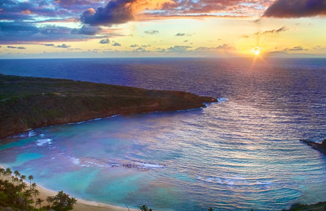 夏威夷有灑滿日光的海天一色,有熱情歡快的部族群舞,有優(yōu)雅靜謐的海濱步道,有恢宏震撼的火山地質奇觀。馬克·吐溫說:夏威夷是大洋中最美的島嶼,是停泊在海洋中最可愛的島嶼艦隊。夏威夷吸引觀光游客的,并非名勝古跡,而是它得天獨厚的美麗環(huán)境,以及夏威夷人傳統(tǒng)的熱情、友善、誠摯。夏威夷風光明媚,海灘迷人,日月星云變幻出五彩風光:晴空下,美麗的威爾基海灘,陽傘如花;晚霞中,岸邊蕉林椰樹為情侶們輕吟低唱;月光下,波利尼西亞人在草席上載歌載舞。夏威夷的花之音,海之韻,為游客們奏出一支優(yōu)美的浪漫曲。