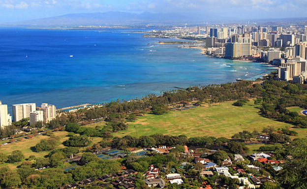 二、威基基海:威基基海灘東起鉆石山下的卡皮歐尼拉公園(Kapiolani Park),西至阿拉威(Ala Wai)游艇碼頭,長達1英里(大約1.6千米),每天到這里的游客不計其數。海灘區(qū)有細致潔白的沙灘、搖曳多姿的椰子樹和寧靜開闊的水域,是一家老小假日休閑的理想地點。除了沙灘,威基基還有很多的有趣景點可供參觀,包括威基基水族館(Waikiki Aquarium)和檀香山動物園(Honolulu Zoo)。日落時分,還可以在威基基海灘步行街以及度假村內用餐、購物、跳舞、觀看現場表演。