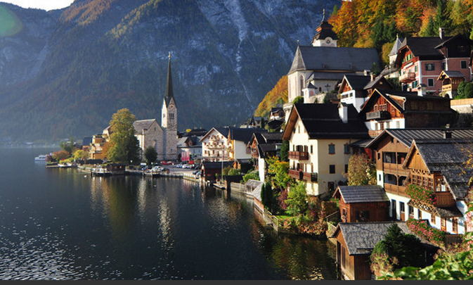哈爾施塔特:整個(gè)小鎮(zhèn)沿湖而建,人口也很少,這是一個(gè)美得令人心醉的湖邊小鎮(zhèn)。湛藍(lán)的湖水、明凈的天空、多彩的歐式木樓、尖頂?shù)慕烫茫渖锨嗌降牡褂?、雪白的天鵝、斑斕的秋色,組成了一幅絕妙的歐洲山水畫卷。