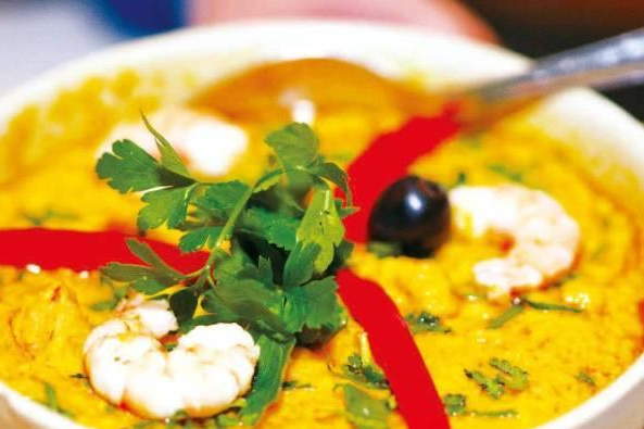 2.另外,巴西菜里里口味最特別的,首推巴伊亞菜:巴伊亞最著名的菜有,Vatapa(用鮮蝦、蝦米、鮮魚、花生、椰奶、dende油、佐料和面包熬成的濃湯);moqueca(用鮮魚、鮮蝦、螃蟹或什錦海鮮加dende油、椰奶醬熬煮而成);xinximdegalnha(雞丁加dende油、蝦米和花生快炒而成);caruru(鮮蝦加秋葵莢與dende油拌抄而成);bobodeCamarao(作料是樹薯泥、鮮蝦、dende油和椰奶);acaraje(一種小薄餅,用dende油炸過的花生加入Vatapa、蝦米和紅辣而成)。這些名菜雖然美味可口,然而油膩的棕櫚和椰奶可能使有些人的腸胃不易消化