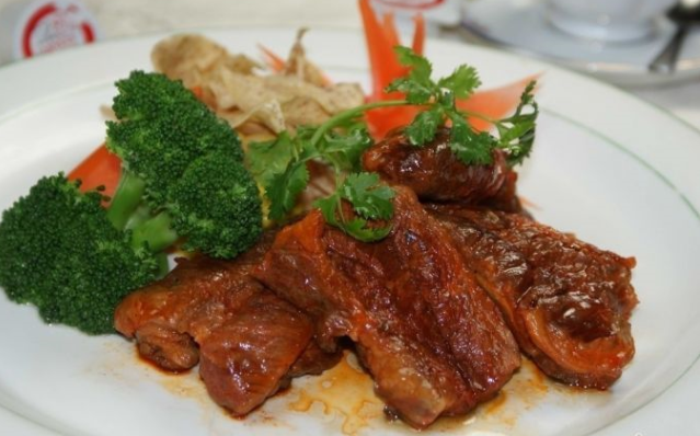 炭烤牛肋條:炭烤牛肋條也是肉質(zhì)甘香,配上用洋蔥、青紅椒切細(xì)的香料,不肥不膩,香嫩可口。