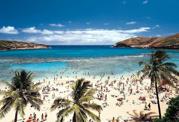 7.威基基海灘:威基基海灘是夏威夷最出名的海灘,也是多數(shù)游人心目中最理想的夏威夷海灘。海灘東起鉆石山下的卡皮歐尼拉公園(Kapiolani Park),西至阿拉威(Ala Wai) 游艇碼頭,長達一英里,每日到這里的游客不計其數(shù)。海灘區(qū)的精華部分是從麗晶飯店到亞斯頓威基基海濱飯店之間的一段, 這里有細致潔白的沙灘、搖曳多姿的椰子樹以及寧靜開闊的水域,是一家老小假日休閑的理想地點。除了海灘,威基基還有眾多的景點可供參觀,包括威基基水族館(Waikiki Aquarium)和檀香山動物園(Honolulu Zoo)。日落時分,你還可以在威基基海灘步行街以及度假村內(nèi)用餐、購物、跳舞、觀看現(xiàn)場表演。