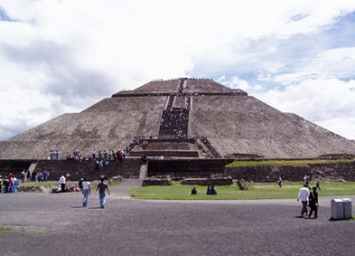 太陽月亮金字塔:1987年名列《世界遺產(chǎn)名錄》的特奧蒂瓦坎,太陽金字塔(Pirámide del Sol)和月亮金字塔(Pirámide de la Luna)是特奧蒂瓦坎(Teotihuacan)古城遺跡的代表性建筑。位于特奧蒂瓦坎亡靈大道東側(cè)的太陽金字塔,約建于公元2世紀,是世界第三大金字塔,也是特奧蒂瓦坎最大的建筑。太陽金字塔的方形塔基規(guī)模為225米×222米,5層塔身共高63米。這座體積達100萬立方米的龐大建筑,除雕刻著絢爛圖案的火山石外壁外,整個主體以250萬噸泥土和砂石堆砌。可惜的是,20世紀修復太陽金字塔時,建筑師萊奧波爾多·巴特雷斯在原有的4、5層之間加建了一層,并重修了金字塔的東、南、北三面外墻,一定程度上破環(huán)了太陽金字塔的最初面貌。