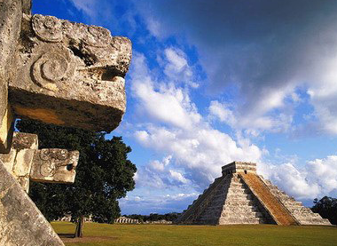 奇琴伊察古跡:奇琴伊察古城遺址,位于墨西哥東南部的尤卡坦州。1988年,聯(lián)合國教科文組織將奇琴伊察古城遺址作為文化遺產(chǎn),列入《世界遺產(chǎn)名錄》。奇琴伊察城始建于公元5世紀,公元11世紀-13世紀發(fā)展達到頂峰。著名建筑是庫庫爾坎金字塔和塔頂上的羽蛇神廟。金字塔高達24米,塔的每邊都有91級臺階,加上頂部的平臺,共有臺階365級,代表瑪雅太陽歷中的一年。石階兩邊,有雕刻成巨蛇形的石砌欄桿。塔頂上的羽蛇神廟高6米,內(nèi)部使用了羽蛇形狀的石柱裝飾。庫庫爾坎金字塔以西,有一座虎廟?;R得名于寺廟頂部一座老虎造型的雕像,廟內(nèi)有一幅描繪城市爭奪戰(zhàn)的壁畫。