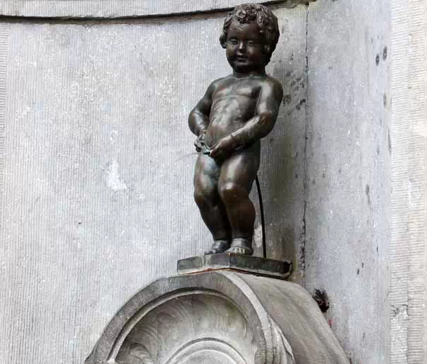 撒尿小童:從大廣場(chǎng)向北走,穿過一段碎石小路,在一條名叫狗街的轉(zhuǎn)彎處,豎立著一尊50厘米高的撒尿小童銅像。這個(gè)微卷頭發(fā)的“布魯塞爾第一公民”小于連翹著小鼻子,挺著小肚,屈著肥嘟嘟的腿,光著屁股,右手叉腰,調(diào)皮地微笑,從早到晚無拘無束地在人們面前撒尿。