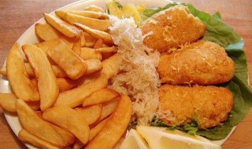 ?炸魚(yú)薯?xiàng)l:長(zhǎng)期以來(lái),炸魚(yú)薯?xiàng)l一直是英國(guó)最流行的外賣(mài)食品。全境有1.1萬(wàn)多家炸魚(yú)薯?xiàng)l店,這道快餐每年大約能賣(mài)出2.55億份。這一傳統(tǒng)美食是將魚(yú)(一般是鱈魚(yú)和 黑線鱈)兩面裹粉后煎炸,再配上比美式薯?xiàng)l更加粗厚的英式薯?xiàng)l。進(jìn)餐時(shí)的傳統(tǒng)配料包括鹽、醋、番茄醬或蛋黃醬沙司以及豌豆糊。如果沿著英國(guó)海岸旅行,炸魚(yú) 薯?xiàng)l堪稱經(jīng)典的海濱晚餐?!?/span>