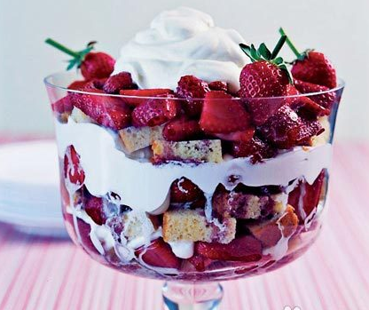 ?英式查佛:英式查佛(Trifle),象布丁一樣,是英國(guó)的傳統(tǒng)甜品,通常由水果,蛋糕或是餅干,custard,奶油一層一層做成,層層疊疊就是Trifle的最大特點(diǎn),此外,用甜酒比如雪利酒淋泡過(guò)的蛋糕或是手指餅,也是Trifle的獨(dú)特之處。水果的清甜加上美酒的香醇,算是非常獨(dú)特的甜品。除了那些英國(guó)人離不開(kāi)的烤豆、魚(yú)和炸薯?xiàng)l外,英式香腸外,這個(gè)很英式的Trifle算是英國(guó)人最離不開(kāi)的甜點(diǎn)了。
