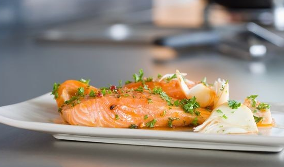 楓糖煎三文魚:加拿大有一道名菜叫"楓糖煎三文魚":三文魚先用胡椒、玉桂粉腌了、煎熟,配上綿綿的薯蓉和蔬菜絲,然后再淋上楓糖而成。魚肉的鮮美加上楓糖特有的甜香,即美味又有營養(yǎng)。