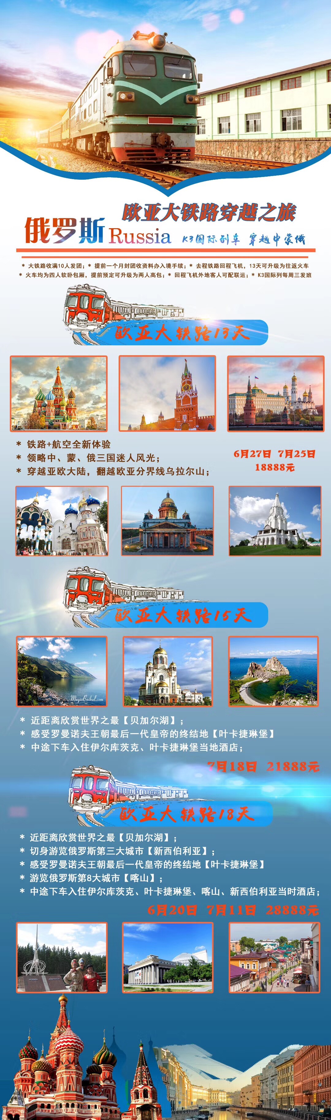 北京青年旅行社提供北京到俄羅斯K3火車團(tuán)線路:詳情請查看 http://fz2001.com/eluosi/K/ 多條K3火車團(tuán)發(fā)團(tuán)產(chǎn)品市面全覆蓋 人多價格可談優(yōu)惠歡迎咨詢 010-51285960 手機微信13911843466 張先生
