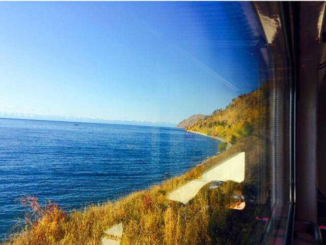 列車一直沿著湖開,要開近3個小時。貝加爾湖真是窒息的美。一望無際的湖面上空無一物。