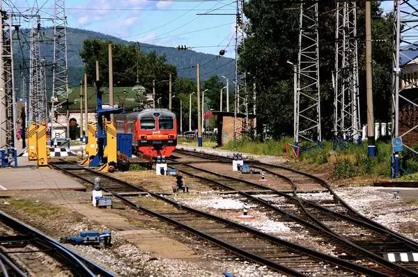 換輪完成后列車返回車站,掛上蒙古機車準(zhǔn)備出國。