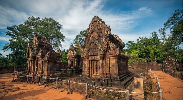 女王宮被譽(yù)為是吳哥藝術(shù)皇冠上的一顆珍珠,因?yàn)樗蟛糠謪歉绻袍E所使用的清砂巖不同,采用的是高棉特有的紅土及略顯桃色的石塊建造而成,所以看上去十分艷麗,跟一般的建筑完全不一樣的建造風(fēng)格。在女王宮內(nèi)有世界上最好的石雕作品,雖然規(guī)模不大,但是名氣很大,是吳哥比較小的一處景點(diǎn),但卻是吳哥古跡中風(fēng)格最為獨(dú)特也是最精致的建筑之一。