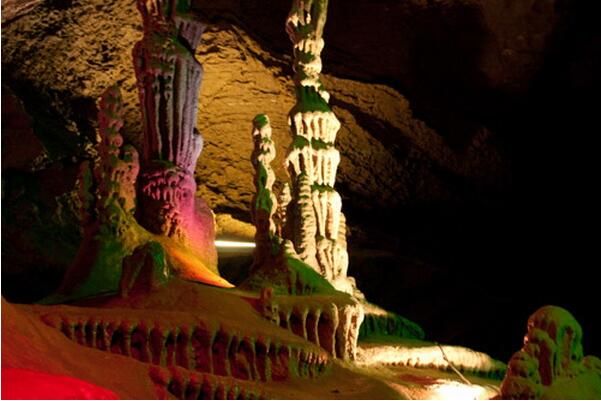 魚(yú)谷洞內(nèi)全長(zhǎng)約1800 米,共分5層,層層有景,景景奇特,洞中有洞,洞洞相連。魚(yú)谷洞內(nèi)奇特的地質(zhì),形象逼真的石花、云盆、鵝管、等鐘乳石。遠(yuǎn)古地質(zhì)遺跡奇特景觀是大自然賦予人類杰出的作品。魚(yú)谷洞景區(qū)名泉眾多,魚(yú)谷泉、神魚(yú)泉、神洞泉、神天泉四大泉群,尤以魚(yú)谷泉聞名。