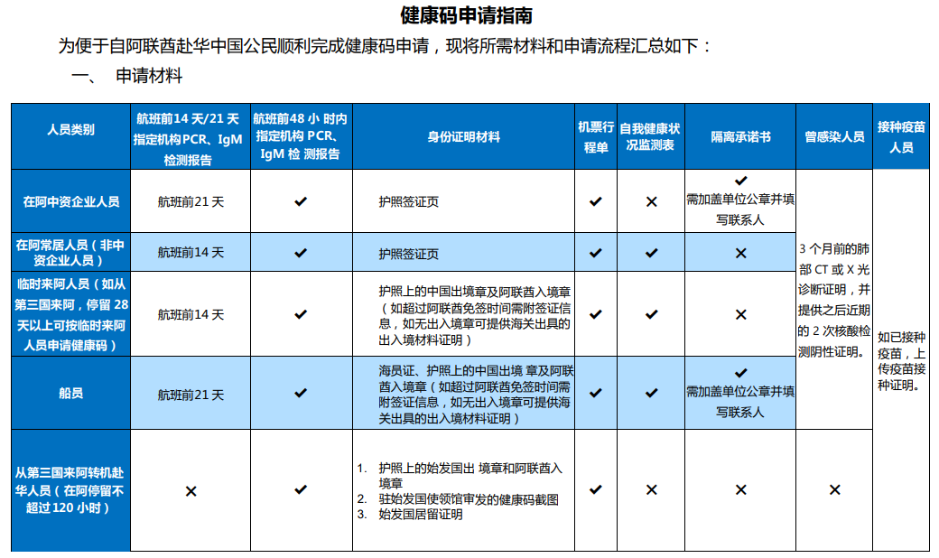 一、完全接種新冠疫苗和按時(shí)接種加強(qiáng)針。所有赴華乘客須完全接種新冠疫苗和按時(shí)接種加強(qiáng)針(疫苗必須被阿聯(lián)酋衛(wèi)生與社會(huì)預(yù)防部認(rèn)可或被世界衛(wèi)生組織列入使用名單),乘機(jī)前提供相關(guān)疫苗接種證明(官方機(jī)構(gòu)出具)。12歲以下兒童可豁免此接種疫苗及加強(qiáng)