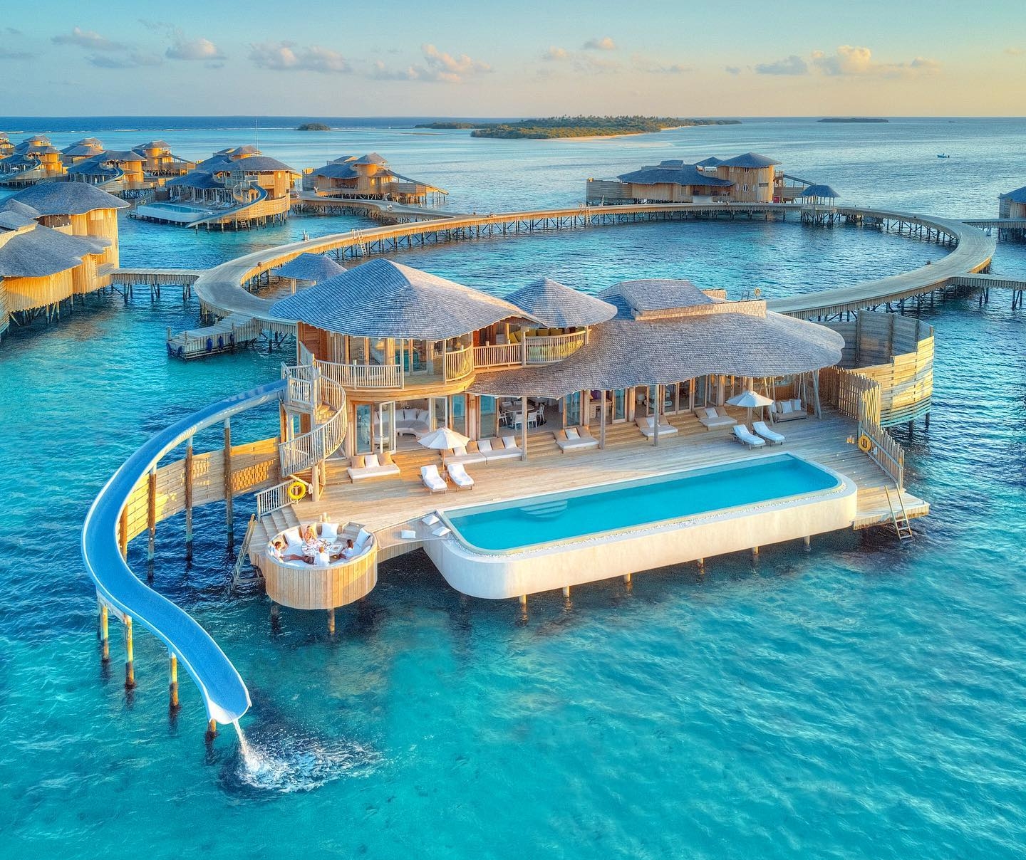 這家島主可是鼎鼎大名,在馬爾代夫擁有多個(gè)知名島嶼。并且島主非常壕!買(mǎi)水上飛機(jī)、直接英國(guó)買(mǎi)了一個(gè)賽馬團(tuán)隊(duì)移植到島上。修了個(gè)酷漂水樂(lè)園,這是七妹目前了解到蕞大的水上樂(lè)園!目前又在計(jì)劃島上修一個(gè)F1賽道公園!反正一個(gè)字“買(mǎi)”“買(mǎi)”“買(mǎi)”!這個(gè)島特色之一就是非常出片!并且親民到人均1個(gè)W就可以入住滑梯水屋~