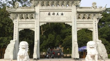 方亭西是影壁,原為磚雕三龍壁,上書梵文“唵嘛呢叭彌吽”(意即神力不可思議),文革期間被毀。后來在這里重建了九龍壁一座,正對著天王殿。 此壁不同于故宮、北海、大同三處的陶制九龍壁,是用60塊70厘米見方的青石浮雕砌成,全壁雕刻鑲嵌精致,不露縫隙,猶如一整塊大石板雕刻而成。 九龍壁高2米、寬12米、厚1米,極富立體感,壁中九龍昂首舞爪,騰云戲珠,形象逼真。