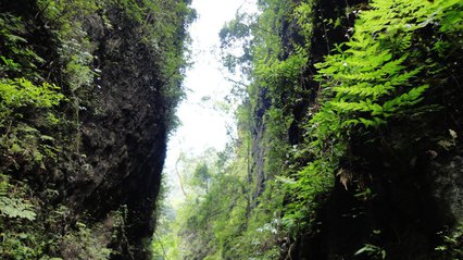 沿著溪邊的棧道從清音閣步行約20分鐘,或由生態(tài)猴區(qū)沿棧道步行約15分鐘可到。
