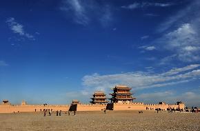 今天,嘉峪關(guān)經(jīng)過修葺,仍可見當(dāng)年雄險的邊關(guān)氣勢,登關(guān)樓遠(yuǎn)眺,長城似游龍浮動于浩翰沙海,若斷若續(xù),忽隱忽現(xiàn)。天晴之日,或海市蜃樓,或塞上風(fēng)光,奇特景色,盡收眼底。