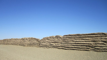 漢長(zhǎng)城至今仍基本保存完整,峰燧旁邊有報(bào)警時(shí)用以點(diǎn)燃烽火的積薪垛15堆,最大的長(zhǎng)2米,高1.3米以上,而且都已凝結(jié)為化石。在漢長(zhǎng)城烽燧中曾出土1200多枚價(jià)值不菲的漢簡(jiǎn)。