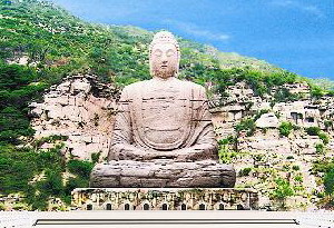 蒙山大佛簡介: 蒙山在太原西南約20公里處,晉祠以北的寺底村,主峰高1325米,蒙山曉月為舊太原八景之一。北齊高洋帝于天保二年( 551)將東魏大莊嚴(yán)寺擴(kuò)建為開化寺,開鑿了高 200尺的摩崖大佛,稱為西山大佛,比目前全國最大的樂山大佛略高。隋文帝時新建了庇蓋大佛的殿閣,唐高宗和武則天曾來此禮佛,賜宮內(nèi)袈裟。由于寺毀閣傾,大佛淹沒于亂石瓦礫之中,僅見胸頸部分,胸寬25米,高17.5米,頸部直徑寬五米。目前做為旅游資源正在規(guī)劃開發(fā)之中。