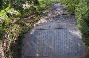 康有為自戊戌變法失敗后,輾轉(zhuǎn)海外,回國后多次來青島,并兩次專程來嶗山太清宮游覽。這首五言體詩,起首便是“天上碧芙蓉,誰擲東海濱”,氣勢恢宏,立意新穎,把嶗山寓意為天上的碧芙蓉;“青綠山水圖,樣本李將軍”,又把風(fēng)光無限的嶗山比作唐代以專攻山水畫而著稱的李思訓(xùn)的畫卷。李思訓(xùn)(651-716)是唐開元年間的武衛(wèi)大將軍,善畫山水樹石,并自成一家,其子也善畫山水畫,史稱“大、小李將軍”。這首詩字里行間都是贊美嶗山風(fēng)光、水色、奇峰、怪石、異卉、古木及建筑特色,酣暢淋漓,似行云流水,是太清風(fēng)景游覽區(qū)最有價值的刻石之一。鄧小平同志1979年來嶗山視察時,在這里仔細(xì)觀看了足有1刻鐘時間,看完后肯定地說:“這是康有為的真跡。” 故人寄情山水間,昔日聲光又燦然。這處雕鑿于山崖上的著名石刻是康有為于1923年65歲時游覽太清宮寫下的一篇游記,是一首五言66句長詩。