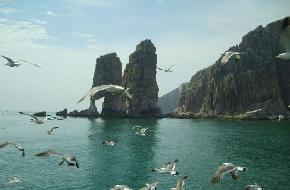 大黑山島海蝕奇觀的龍爪山景區(qū),乘船觀賞海豹礁上憨態(tài)可掬的海豹,觀猴磯島上英國人1882年建造的燈塔。