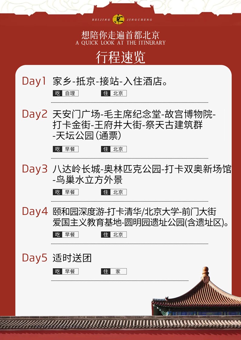 【皇家惠游】-北京品質(zhì)5日游-不帶錢包游帝都 0自費(fèi)O購物O景交 皇家惠游 O 購物 0 自費(fèi) 0 景交 O 暗店 —漫游帝都,追憶冬奧精神…… 住的舒心:精選北京中... |