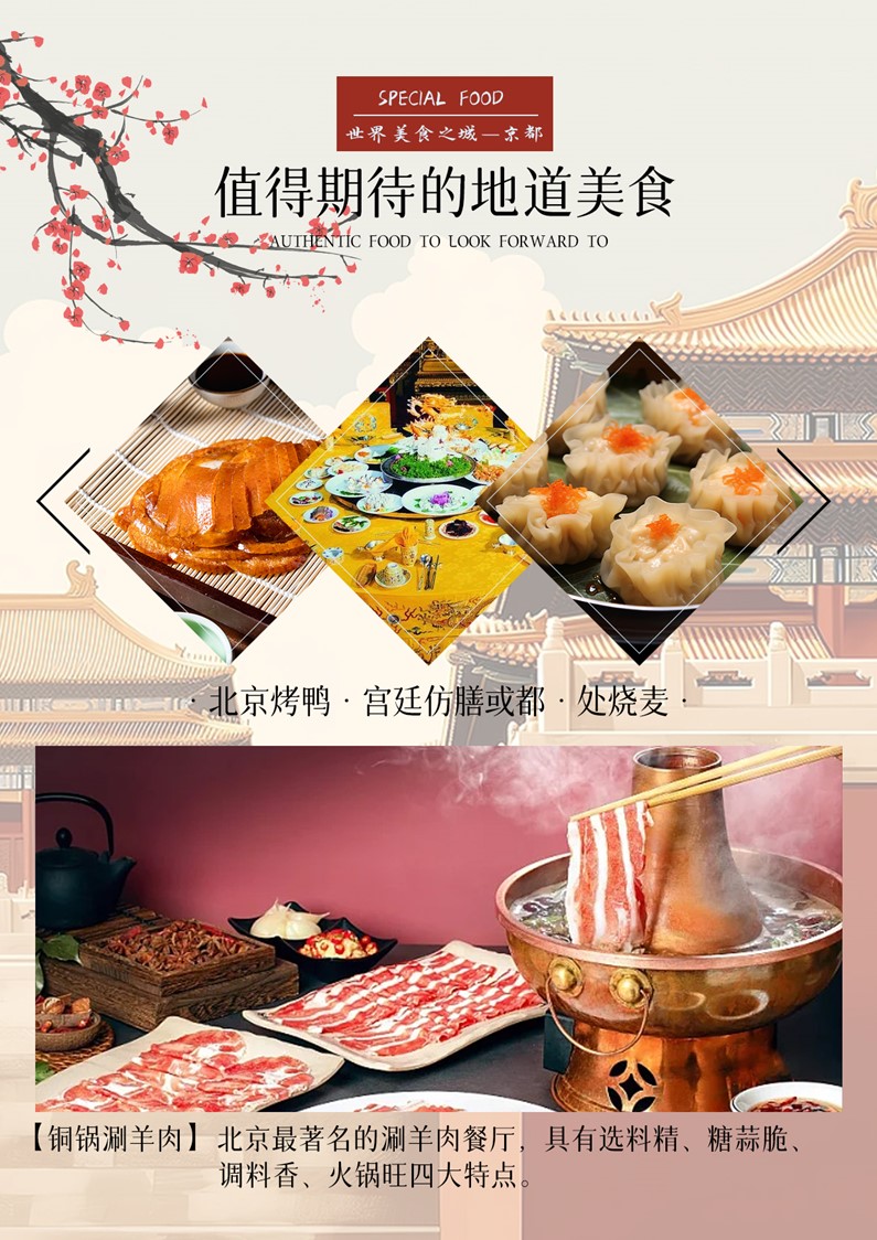 ● 推薦:著名的【銅鍋涮羊肉】-北京最著名的涮羊肉餐廳,具有選料精、糖蒜脆、調(diào)料香、火鍋旺四大特點(diǎn)。其涮羊肉肥而不油,瘦而不柴,一涮即熟,久涮不老,吃起來不膻不膩,味道鮮美。