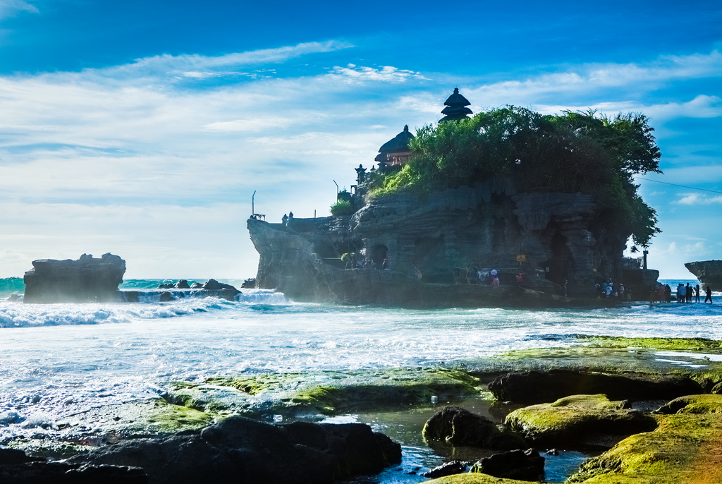 早餐后前往【南灣】,乘玻璃底船前往【海龜島】,如果您感興趣可以參加到南灣精彩的水上活動中去,【洋洋斷崖】,遠眺斷崖,欣賞海天一色的美景,氣勢磅礡;仿佛一幅畫,并享用當(dāng)?shù)靥厣鞠挛绮琛?。前往【海神廟】(約1小時)海中形似船只的巨巖上,聳立著巴厘島六大寺廟之一,祭拜海之守護神的海神廟,搭配南洋夕照的熱帶夕陽海景,成為巴厘島代表性風(fēng)景之一。隨后前往【金巴蘭海灘落日】,在海邊享用晚餐,把巴厘島的旅游帶入一個全新的境界。