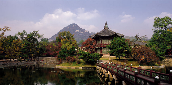 景福宮】(約60分鐘)興建于公元1395年的景福宮,內(nèi)保存有朝鮮時(shí)代的代表建筑—慶會(huì)樓以及香遠(yuǎn)亭荷塘,勤政殿的月臺(tái)和塑像均是朝鮮時(shí)代雕刻藝術(shù)的結(jié)晶。