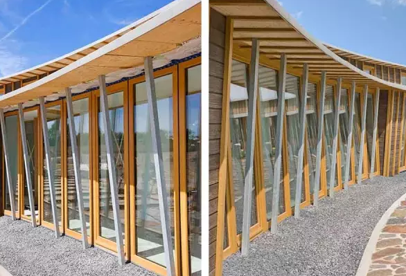 據(jù)北京旅行社了解,這棟小木屋位于比利時(shí)東部一座村莊中,地處斜坡上,受到附近樹林庇護(hù),坐擁壯麗鄉(xiāng)村景色。建筑師希望建立一座環(huán)保,具有低視覺沖擊力,能夠完美融合到當(dāng)?shù)丨h(huán)境中的建筑。