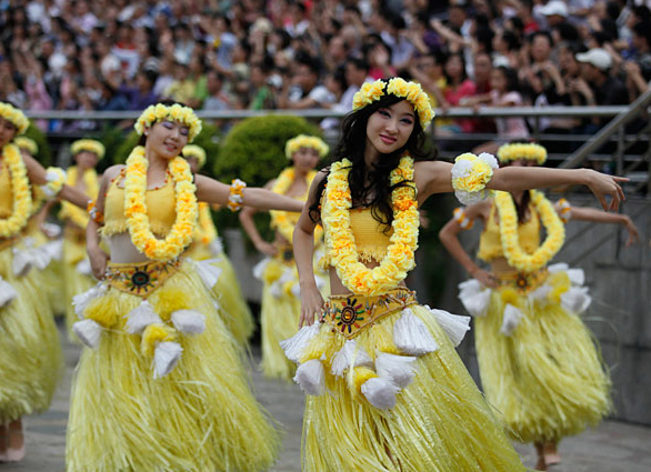 草裙舞的表演形式多種多樣,一個人能表演草裙舞,一群人也可以表演。如今的夏威夷人,正是以這種載歌載舞的方式迎接原來的客人,對于他們來說,草裙舞是他們的文學(xué)作品,是他們的靈魂與生命,同時,也是讓外界來了解他們的窗口。