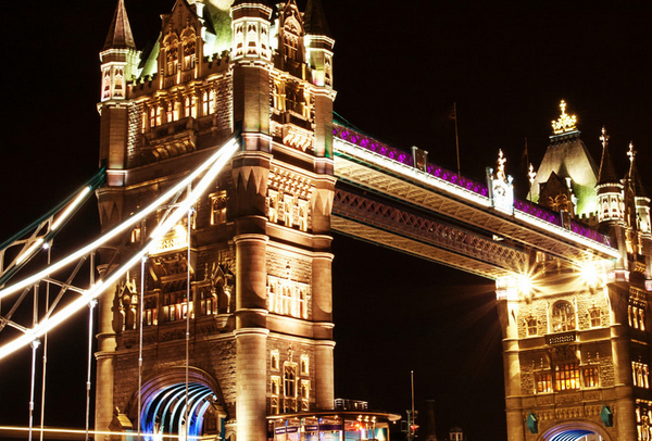著名的倫敦塔橋,不僅僅白天很美,夜晚的時候,在彩色燈光的照耀下,顯得更加耀眼,光彩奪目而有著別樣的意境!