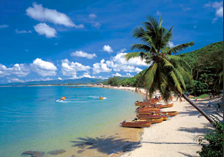 搭上以情人島著稱的蜈支洲島的游船,心里便充滿了喜悅,我把臉伸出船弦外,快活地迎著濺起的浪花。與我同行的那家伙情意綿綿地說(shuō):“我這可是第一次出海耶!”我感動(dòng)著說(shuō):“謝謝你把你的第一次給了我。”