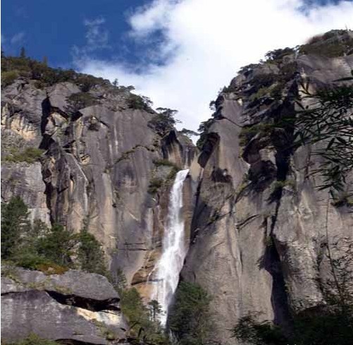 卡定溝瀑布位于西藏自治區(qū)林芝地區(qū)林芝縣八一鎮(zhèn)318國道,距八一鎮(zhèn)24公里處的尼洋河畔卡定溝內,是典型的峽谷地貌,山高溝深,奇峰異石,古樹參天,落差近200米的瀑布飛流直下,雄偉壯觀,瀑布中一尊天然形成的大佛面目慈祥,在瀑布中時隱時現,天佛瀑布由此而得名。瀑布水小時如銀鏈飄然而下,水大時氣勢磅礴、驚心動魄,巖壁上有自然形成佛像與守護者,溝谷中原始森林密布,有與藏傳佛教渾然一體的優(yōu)美傳說。