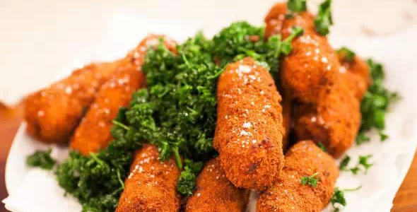 炸蝦丸:是炸丸子的意思,crevettes 是蝦的意思,大部分做的是長條狀的,有時(shí)也會是丸子狀。比利時(shí)最普遍的做法是選用當(dāng)?shù)氐奶禺a(chǎn)灰蝦做內(nèi)餡。味道還是不錯的,但熱量有點(diǎn)高,不適合愛美的減肥人士。