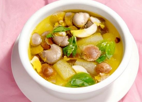 菌菇湯:菌菇湯在瑞典菜肴中不如蘑菇汁、蘑菇煎蛋卷、奶油蘑菇、燉蘑菇等菜肴那么常見,但瑞典人的確采摘并食用野生菌。溫度適宜的濕潤夏天過后,瑞典的森林里就會長滿可食用的蘑菇。而漂亮的“卡爾•尤漢” 蘑菇產量豐富,甚至用于出口。