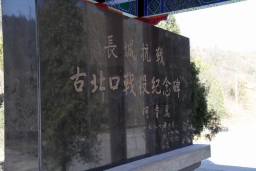 70多年前發(fā)生在這里的“長城抗戰(zhàn)古北口戰(zhàn)役”打響了北京抗日戰(zhàn)爭的第一槍,是長城抗戰(zhàn)中規(guī)模最大、最為慘烈的戰(zhàn)役。1933年1月日軍進犯山海關(guān),3月占領(lǐng)承德,威逼北京,中國軍隊(國民黨十七軍二十五師)第一次進行較大規(guī)模的反擊。此次戰(zhàn)役持續(xù)四個多月,斃傷敵五千余人,自己也傷亡八九千人,終因敵我力量懸殊而失敗。至今在這里還能夠發(fā)掘出當時敵我雙方使用的武器殘留物,可見當時戰(zhàn)況的激烈。戰(zhàn)役結(jié)束后,當?shù)匕傩詹蝗炭谷諏⑹勘┦揭埃园l(fā)組織起來,把戰(zhàn)士尸骨背運至古北口南門外掩埋。一層尸體一層蘆席,整整埋了360多具,形成直徑18米,高10米的大墳,俗稱“肉丘墳”。1934年國民政府革命軍事委員會北平分會為紀念犧牲的抗日將士,設(shè)立“古北口保衛(wèi)戰(zhàn)陣亡烈士之墓”,1997年,時任民革中央主席何魯麗為古北口戰(zhàn)役紀念碑題寫碑名:“大好男兒光爭日月,精忠魂魄氣壯山河。”