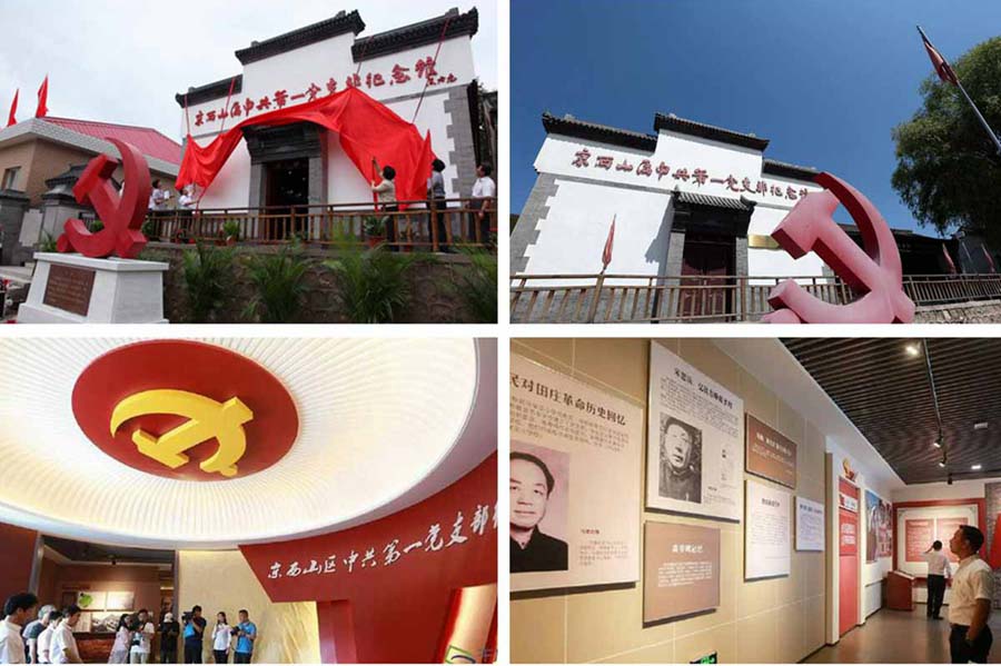 在田莊村文化中心旁建有京西山區(qū)中共第一黨支部紀念館展館,建筑面積144平方米。場館建設(shè)主要突出黨史教育功能,遵循與紅色旅游景區(qū)和整體旅游產(chǎn)業(yè)規(guī)劃相銜接、與周圍環(huán)境相協(xié)調(diào)的原則進行建設(shè)。紀念館陳展主要借鑒國內(nèi)著名紅色旅游景區(qū)場館陳展經(jīng)驗,采取傳統(tǒng)與現(xiàn)代陳展手段相結(jié)合的方式進行設(shè)計,注重挖掘革命史、黨建黨史、戰(zhàn)斗歷程和歷史遺跡。館內(nèi)設(shè)1個展廳,陳展方式以壁畫、雕像、圖片展板等為主。
