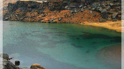 登高俯視,一個碧藍(lán),一個赤黃,好似一對金銀杯,所以人們又稱小天池為對杯湖,別具景色。